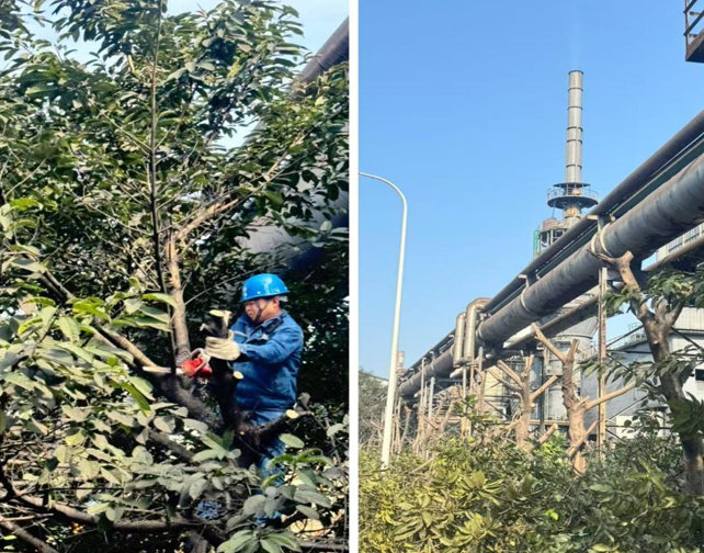 隨著季節(jié)更替,干熄焦脫硫區(qū)域內(nèi)樹木枝干生長繁茂,部分高大樹枝已延伸至生產(chǎn)煤氣管道上方、電氣線路周邊,且部分枯枝、病枝存在倒伏、墜落風(fēng)險。這不僅可能損壞煤氣管網(wǎng)、照明線路,影響正常生產(chǎn)作業(yè)秩序,還會給員工日常巡檢、通行帶來安全隱患。為及時消除風(fēng)險,威遠(yuǎn)澤天生產(chǎn)部部長黃安軍高度重視,迅速制定修剪方案,明確修剪范圍、作業(yè)標(biāo)準(zhǔn)及安全注意事項,由脫硫乙班組長雷波帶領(lǐng)小組成員有序推進(jìn)樹枝修剪工作。